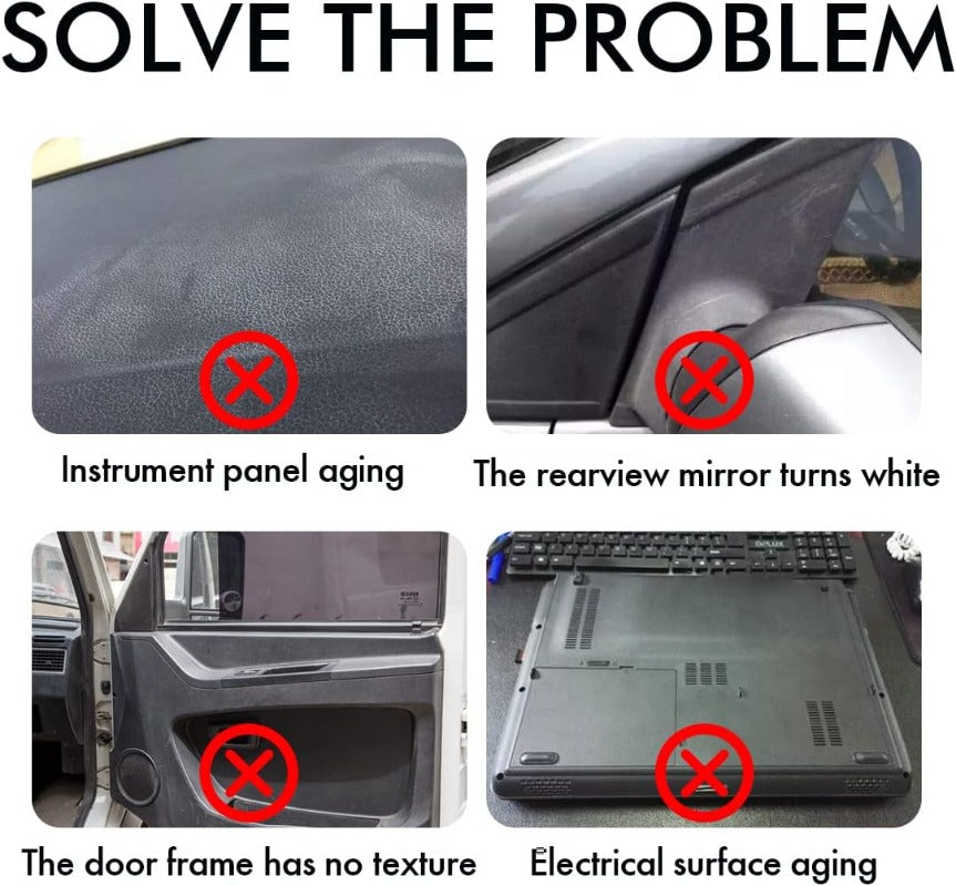 Perfect for all unpainted exterior and interior plastic. vinyl. and rubber surfaces. Use it on bumpers. door handles. rearview mirror housings. dashboard panels. window trims. and more!